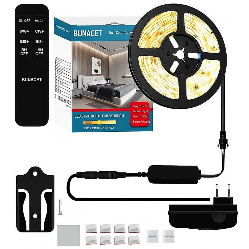 Създайте идеалната атмосфера у дома с LED лентата Bunacet – напълно завършено решение за модерно осветление, което съчетава безопасност, ефективност и стилен дизайн.