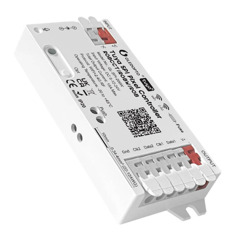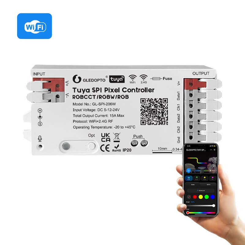 Контролерът поддържа широка гама от Pixel LED чипове, което го прави универсално решение за почти всеки проект – от нежна фонова светлина до пълноцветни анимации и динамични сцени.
