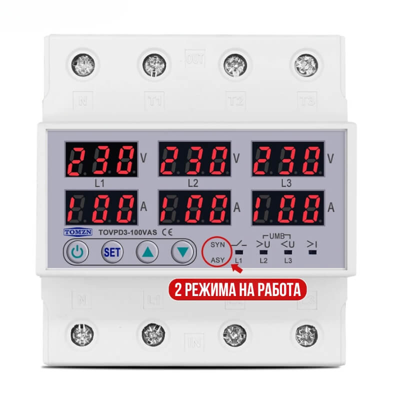 Трифазна Защита от Напрежение и Ток със Синхронен и Асинхронен Режим Tomzn 100A