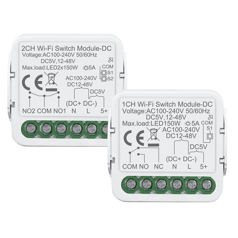 Захранва се както от AC (100–240V), така и от DC (5–48V), което го прави изключително гъвкаво решение за автоматизация в дома или офиса.